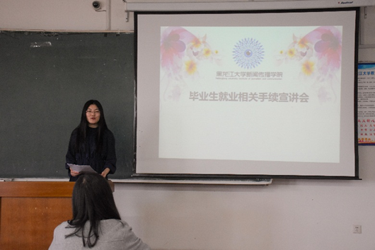 毕业在即,所有的结局都已写好;岁月如歌,每一段青春都应该无悔。毕业季的骊歌已然奏响,为传承黑大精神,响应文明离校的号召,同时为确保学院2018届全体毕业生相关离校工作的顺利推进,新闻传播学院2014级辅导员赵文欣老师向毕业生宣读了《黑龙江大学2018届毕业生文明离校倡议书》,并针对毕业生相关就业政策、毕业生就业相关手续展开宣讲。