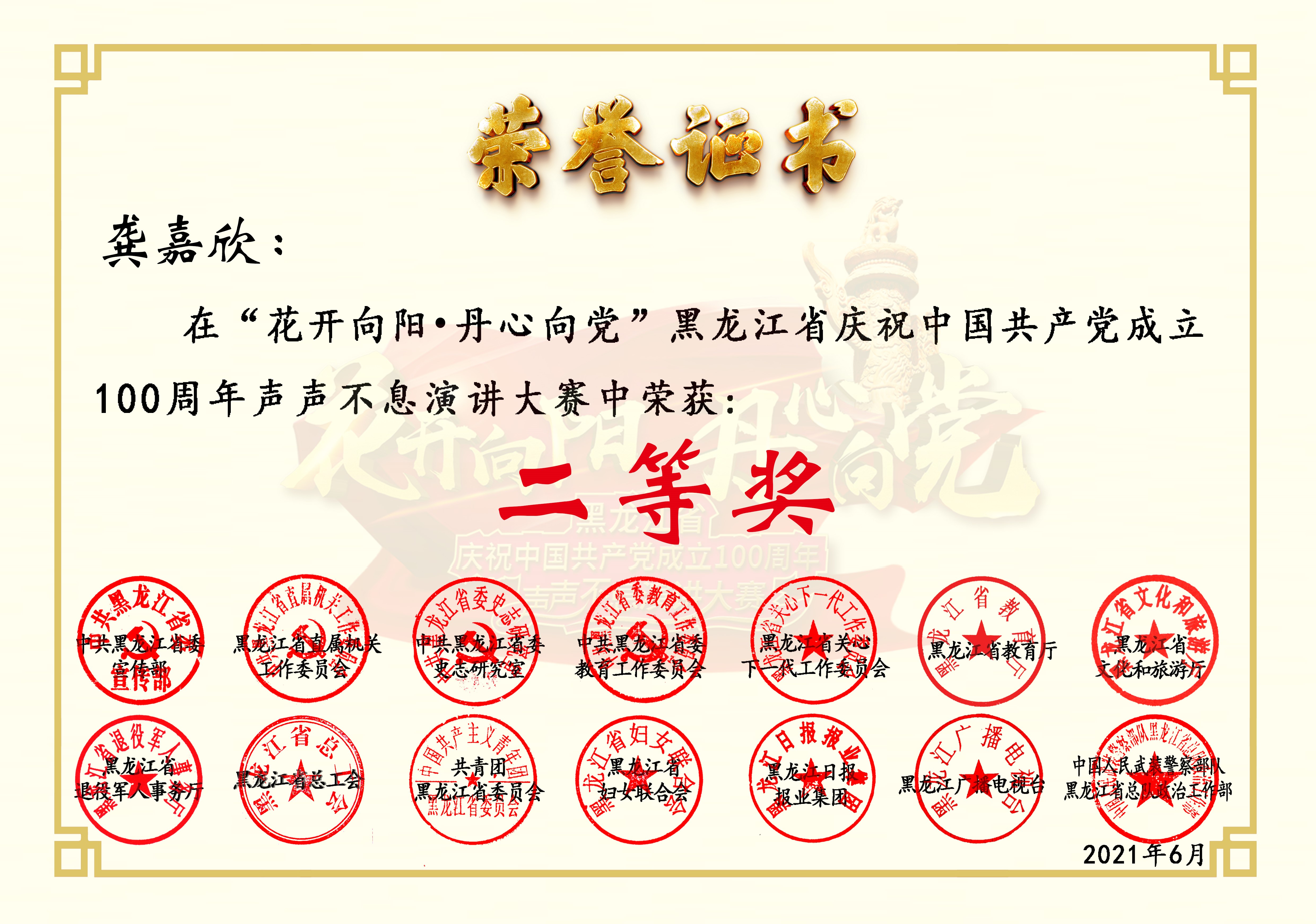 “花开向阳·丹心向党”黑龙江省庆祝中国共产党成立100周年声声不息演讲大赛是由省委宣传部、省直机关工委、省委史志研究室、省委教育工委、省关工委、省教育厅、省文旅厅、省退役军人事务厅、省总工会、团省委、省妇联、黑龙江日报报业集团、黑龙江广播电视台、武警黑龙江省总队政治工作部联合举办,为隆重庆祝中国共产党成立100周年,充分展示中国共产党在内忧外患中诞生,在磨难挫折中成长,在攻坚克难中壮大, 从胜利走向胜利的伟大历程,在全省范围内开展的演讲大赛,该大赛得到了全省各界的广泛响应。
