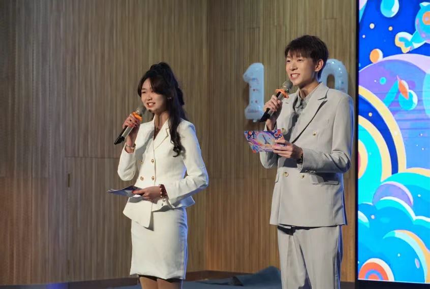10月10日晚六点半,黑龙江大学新闻传播学院新媒体中心“吾光拾色”十周年主题联欢晚会在三号楼地下报告厅举行。学院领导老师,2024级和2023级学生代表,新媒体中心第十届全体成员及往届任职成员出席本次晚会。晚会开始前,工作人员为到场的嘉宾分发精心制作的“辛十年”周边,周边由文件袋,勋章,钥匙扣以及一张邀请函组成。
