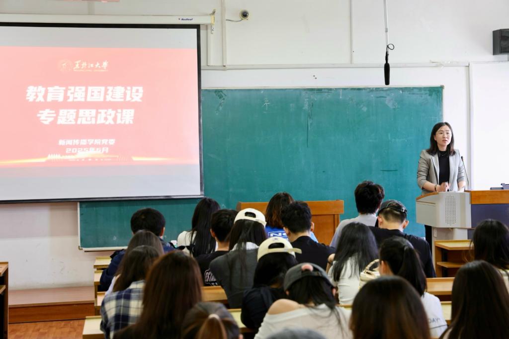 为进一步贯彻落实习近平总书记对学校思政课建设重要指示精神,全面贯彻党的教育方针,落实立德树人根本任务,紧扣新时代新征程教育使命,6月11日新闻传播学院党委书记江瑞讲授专题思政课,2024级学生代表参加。