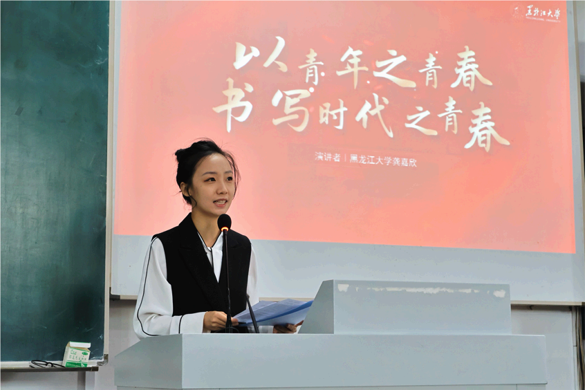 研究生优秀党员代表龚嘉欣和本科生优秀学生代表马雯姝作为学子榜样以《矢志奋斗砺青春,榜样为镜照初心》为题分享了自己的在校学习经验、青年党员责任等,激励同学们用青春书写时代华章,以实际行动为祖国添彩。