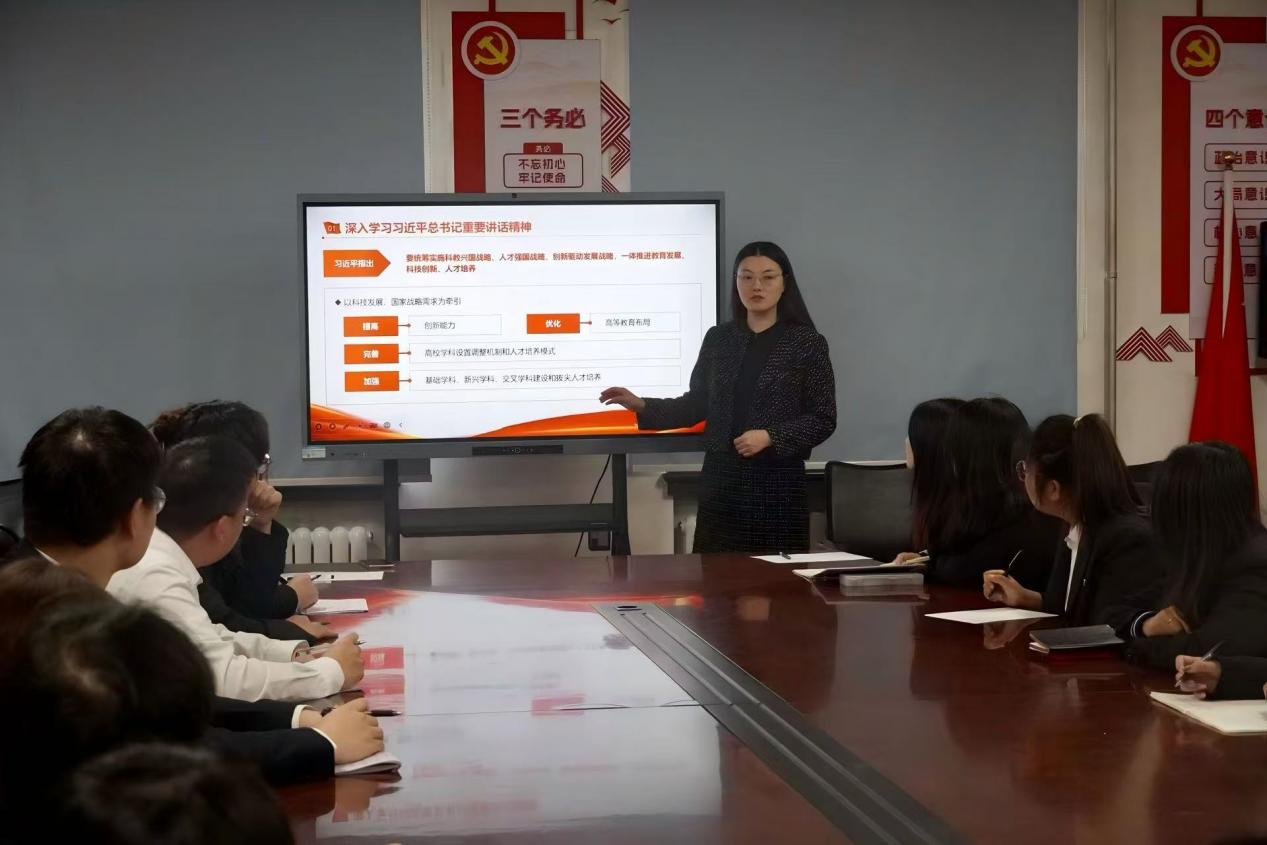 学院团委书记、2022级辅导员赵文欣老师则聚焦习近平总书记关于教育的重要论述,系统阐释了全国教育大会精神及《教育强国建设规划纲要(2024—2035年)》的核心要义,激励学员立足专业、勇担使命,以实际行动投身教育强国建设的伟大实践。