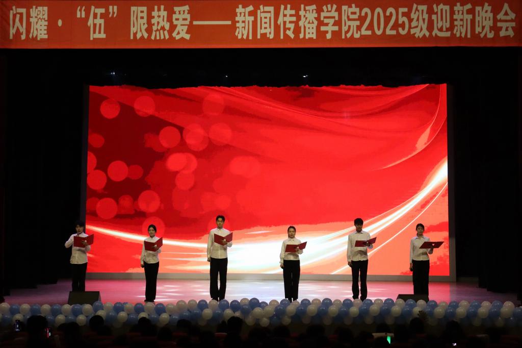 新闻传播学院2025级迎新晚会圆满结束。在回望学院四十年学科积淀与二十载育人荣光中汲取力量,在展望智媒新时代的征程中明确使命。立足智媒蓬勃发展的今天,我们愈发明晰使命担当。青春似火,初心如磐,使命在肩,新传人将始终坚守新闻理想,以笔为炬记录时代脉搏,以镜头为眼捕捉世间温情,以传播为桥凝聚前行合力。时光流转,步履不停,我们定当以青春之名,做新时代的坚定见证者、忠实记录者与积极参与者,用热忱与实干为新闻传播事业续写更加绚丽的篇章。(新闻传播学院供稿)