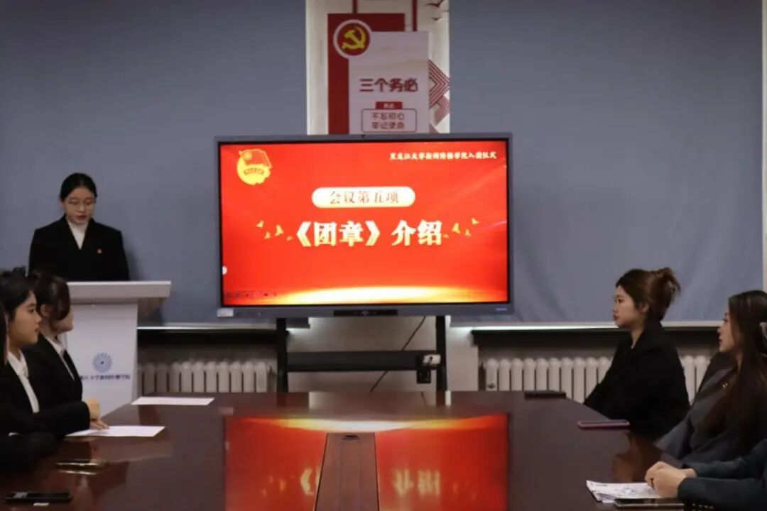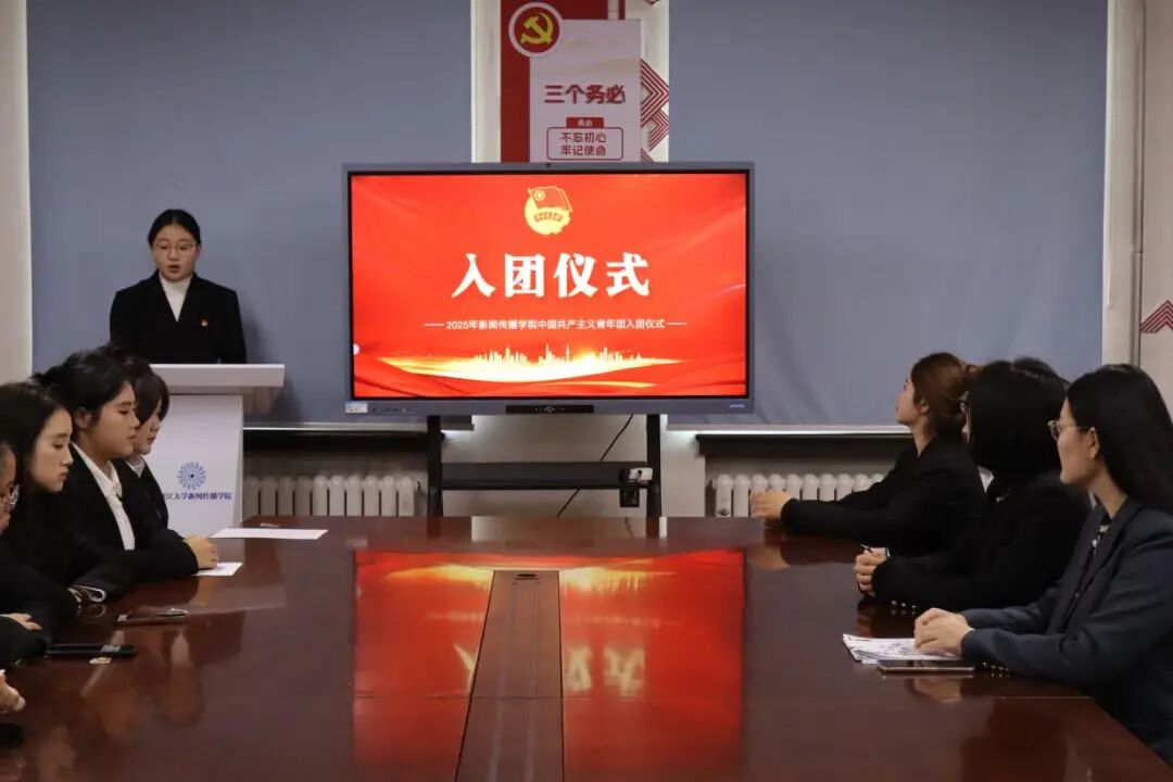 11 月 25 日,新闻传播学院在汇文楼 742 举行新团员入团仪式。仪式由学院团委学生副书记丛祺主持,学院党委副书记衣玉梅、各年级辅导员及新发展团员参加。