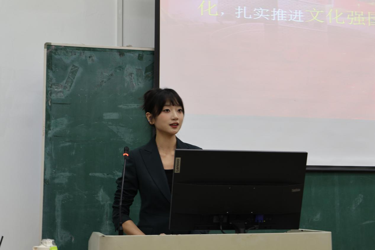 马克思主义学院杜昕佳奕以《向着中国式现代化的宏伟目标,阔步前行接续奋斗》为主题。她强调,青年作为互联网原住民和文化创新主力军,既要根植博大精深的中华文明,又要顺应信息技术潮流,通过二创内容解读中华文化当代价值,以个人鲜活体验打破文化隔阂,向世界传递具有思想引领力、精神凝聚力、国际影响力的新时代中国特色社会主义文化。