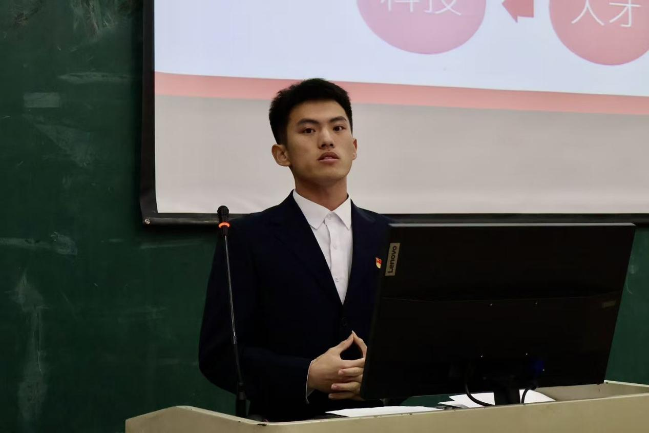 化学化工与材料学院应陈鑫结合“高水平科技自立自强”与“繁荣发展社会主义先进文化”,通过北宋活字印刷术、明代人痘接种法等古代成就与嫦娥奔月工程、体细胞重编程技术等当代突破的古今对比,展现创新基因,印证“科技创新是中华民族基因密码”。他呼吁青年传承文化、实践科技自强,诠释“文明传承与科技自强相辅相成”的内涵。