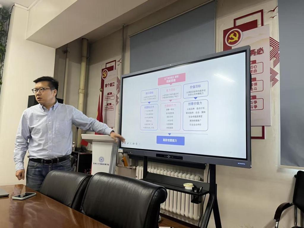 李连璧老师以《广告创意》课程为切入点,分享了备赛校赛的实践思考。该课程已开设24年,坚持成果导向与学生中心理念,构建了“创意知识力、创意执行力和价值目标”三大模块,将AIGC工具全流程融入教学,并通过“40秒×40张幻灯片”提案训练、课赛一体化实践及“益点计划”公益服务模块,实现专业教学与社会服务的有机结合。