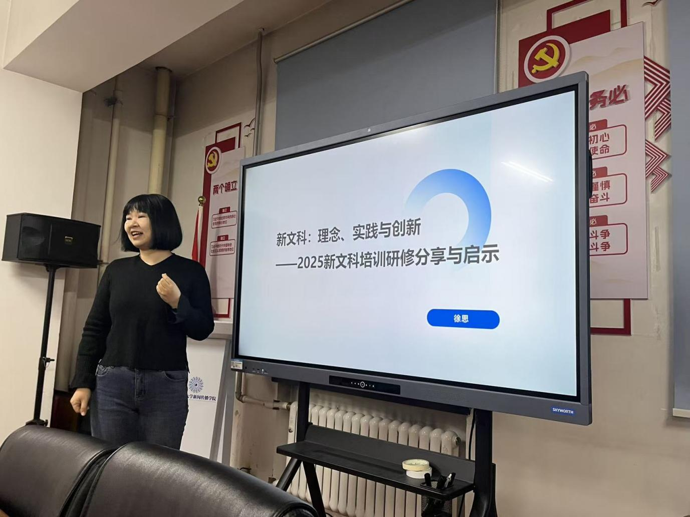 徐思老师则分享了参加山东大学新文科培训的收获。她系统介绍了培训中的前沿教学理念,重点推荐了国赛一等奖获奖教师的国赛备赛经验,强调从真问题出发、强化教育理论学习与团队协作的重要性。结合《外国新闻传播史》课程,徐老师展示了AI在教学中的创新应用,包括利用豆包生成教学素材、剪映AI文字成片功能制作视频、通义千问辅助观课评课等,为传统课程的数字化升级提供了具体路径。