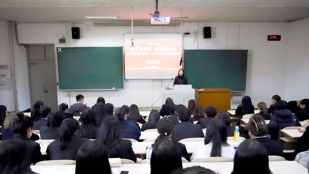 江瑞面向全体学生党员,讲授了题为“青春逢盛世,奋进正当时”的思政课。她围绕学习党的二十届四中全会精神,结合新闻传播学科特点与人才培养目标,从一体推进教育、科技、人才协调发展,大力繁荣文化事业,提升中华文明传播力影响力等维度进行了深入阐释。江瑞强调,作为新闻传播学院的青年党员,要深刻领会全会精神,将专业学习与时代责任紧密结合,在文化传承与创新中勇担使命,努力成为有理想、敢担当、能吃苦、肯奋斗的新时代青年,为社会主义文化强国建设注入青春能量。