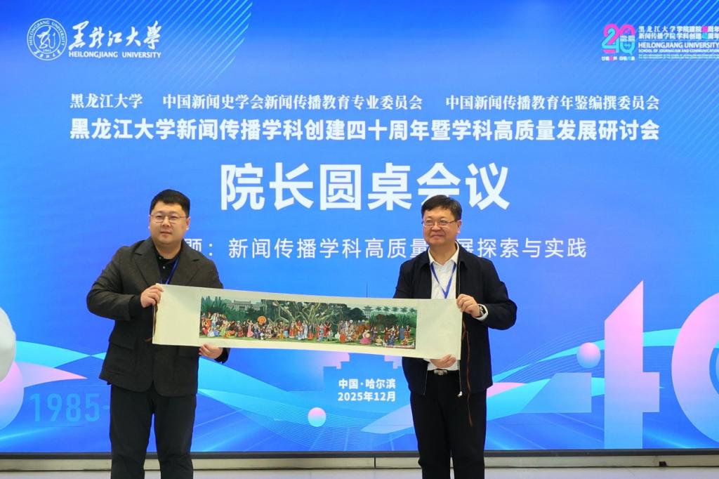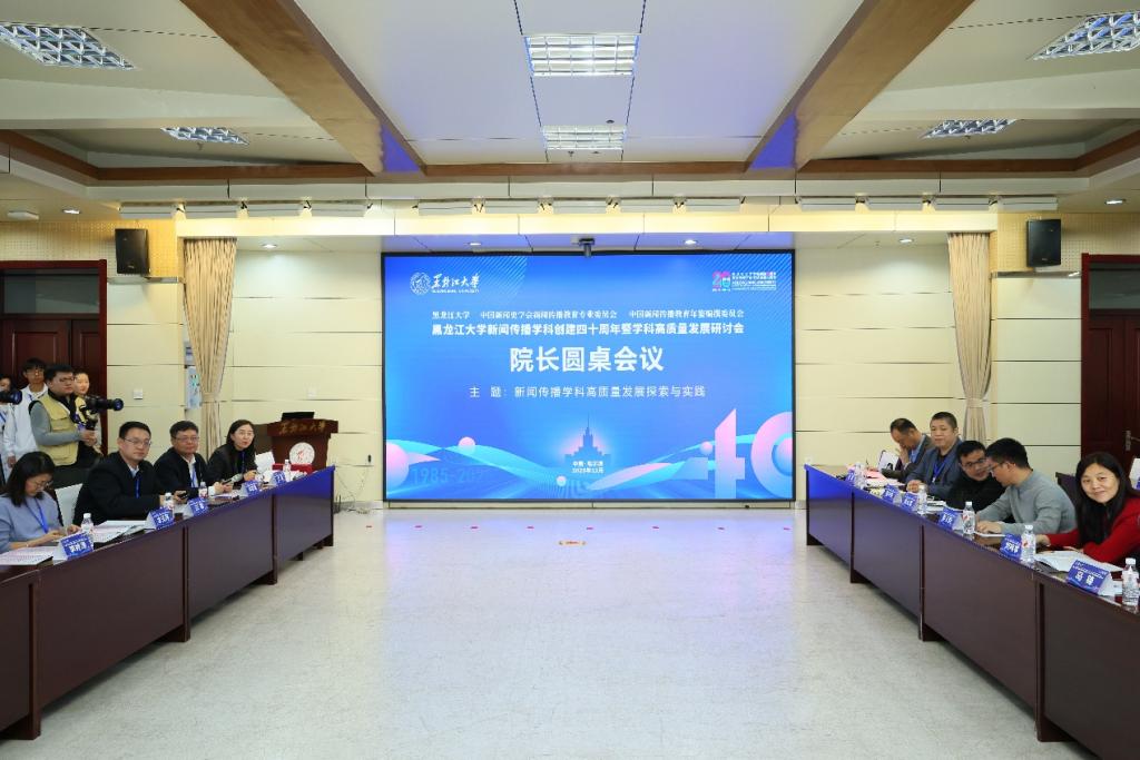 近日,新闻传播学院在主楼A226会议室举办“黑龙江大学新闻传播学科创建四十周年暨学科高质量发展研讨会”院长圆桌论坛。来自全国21所高校的新闻传播学院院长和专家学者,围绕“新闻传播学科高质量发展探索与实践”这一议题展开圆桌会议交流,并结合《黑龙江大学新闻传播学院“十五五”发展规划》为新闻传播学科建设举措提出建议。