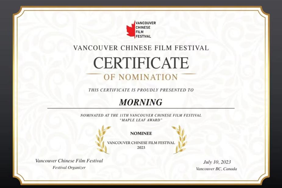 (于千桐、别克共同创作的作品《早》荣获温哥华华语电影节入围奖)