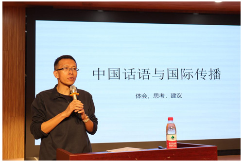李洋老师讲述的国际传播,在理论方面,第一要进行训练,既包括英语新闻训练,也包括国际视野训练;第二是学好一门外语,利用报纸宣传,开拓视野,保持心态平稳,不要急于功利,要充分利用储存信息和互联网上搜集到的信息,发布有突出观点的评论性语言。李洋老师强调,中国应该构建与中国国际地位相匹配的话语体系,青年人应当肩负丰富语言内容、增加发声机会、增加话语权力的使命,将中国的发展优势转化为话语优势,推进中华民族伟大复兴的历史进程。
