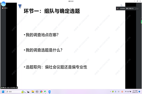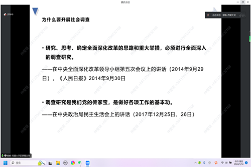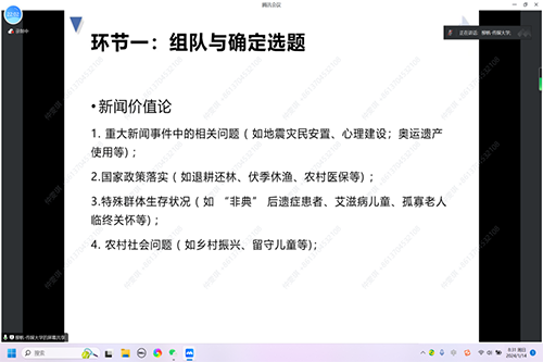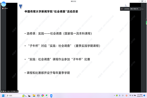 讲座的最后,老师告诉同学们社会调查不仅可以完成任务,还可以帮助我们认识社会,为未来的论文写作、求职就业等带来机遇。同时,讲者强调了与指导老师沟通的重要性,认真钻研社会调查过程,相信会有好的结果和成果。老师在讲座中分享了自己和学院在开展社会调查过程中遇到的问题,希望同学们能从中学习到许多,有所收获。(新闻传播学院供稿)