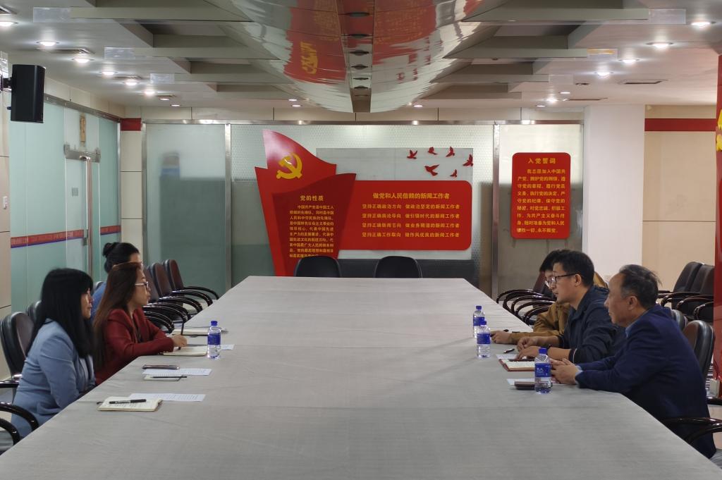 随后,双方就校企共建国际传播基地进行交流。国际传播基地建设是深入贯彻习近平总书记着力加强国际传播能力建设重要指示精神的重要举措,是适应新时代国际传播的需要,校企双方在学术交流、国际化人才培养、对外文化传播等方面携手发力,能够为新闻传播事业高质量发展注入新动能。共建的国际传播基地成员将以新闻传播学为中心,辐射扩展到俄语、西语、东语等专业学生,实现国际传播“专业化”“实战化”。